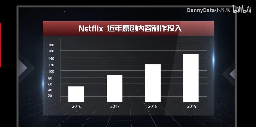 正因为面对激烈竞争环境,奈飞一直以来在原创内容的制作上不惜成本。2016年奈飞的内容投资有50亿美元,2017年这个数字上升到了90亿美元,2018年达到120亿美元,2019年在153亿美元。