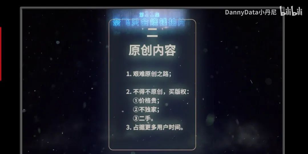 奈飞之前购买的版权视频既不是独家、价格又贵、而且还是二手的,这三大缺点足以让奈飞下定决心去自制原创内容了。