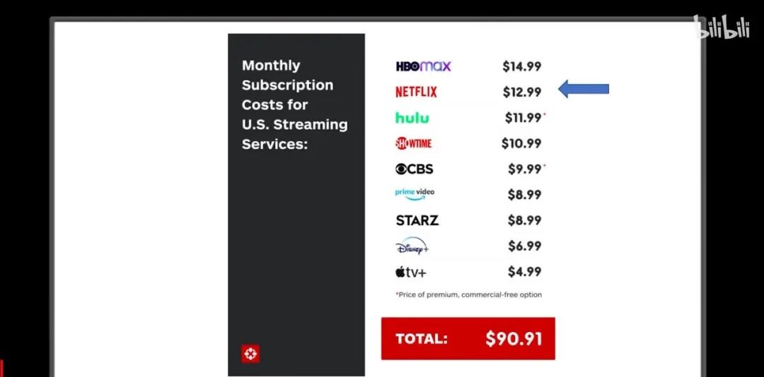 事实上如果你用奈飞的会员费对比美国其他流媒体平台,奈飞的定价确实不便宜。