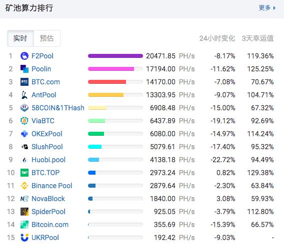 一来,“全网算力”是由出块速度推导而来的,出块速度还受幸运值影响,因此短期的“全网算力”可信度较低。若要知道全网算力下降的真实水平,约需等到 7 日后再看。