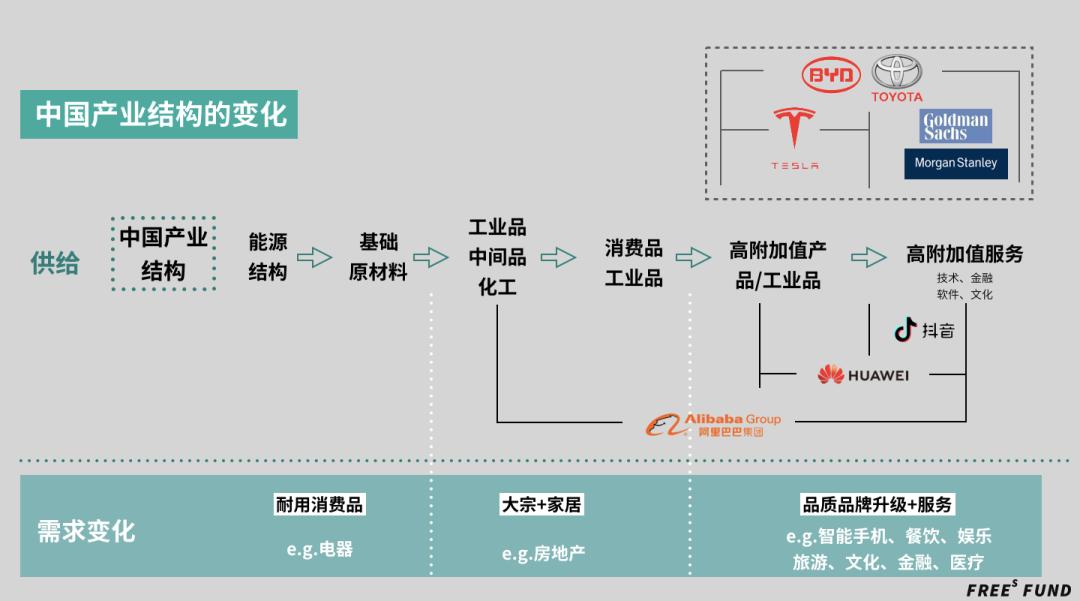 而在中国,阿里巴巴、华为、抖音这三家公司,既代表了中国产业结构的典型变化,也代表了中国产业结构调整的发展方向。
