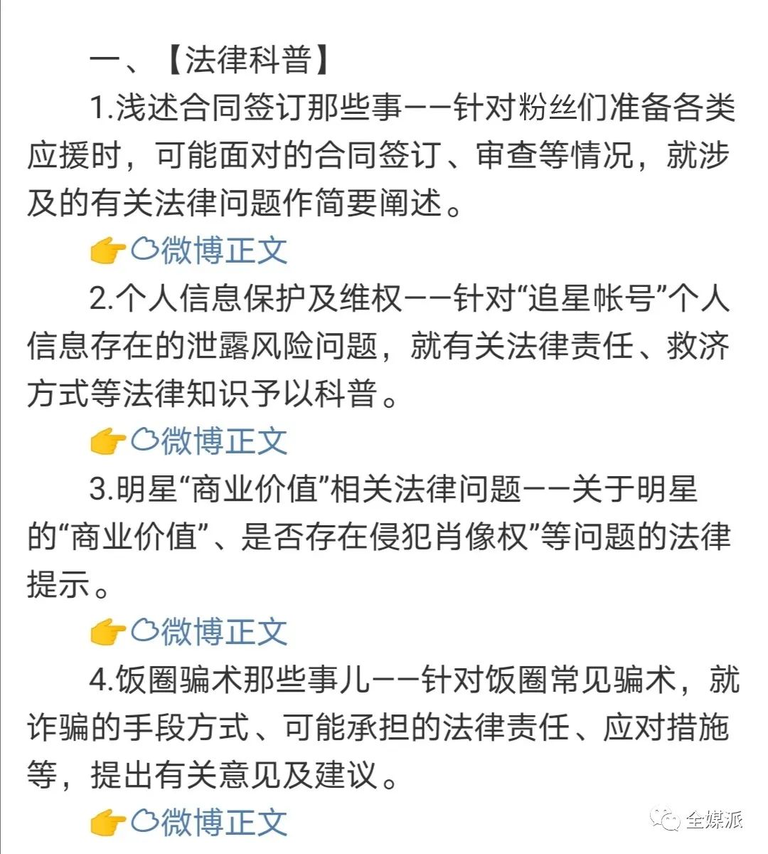 很多来自不同行业的粉丝也自发成立了普法站、公益站、读书会,来帮助粉丝和偶像一起共同成长和进步。