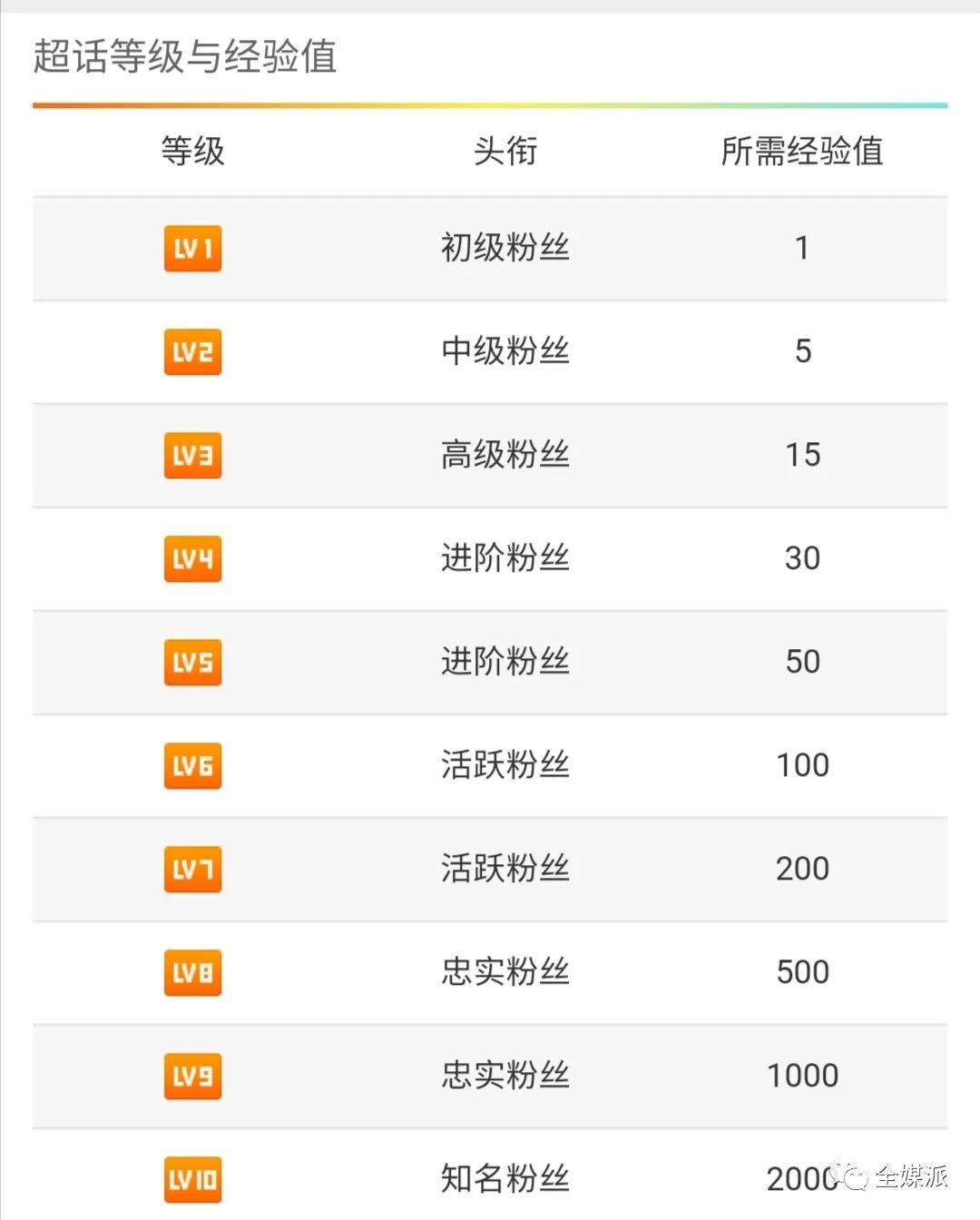 按照在超话内的活跃度,等级越高的粉丝越容易积累人气和经验值成长为意见领袖,从而起到引导粉丝、管理超话社区的作用。而饭圈的“自我约束”,多数都是由这些等级高的超话“大咖”们首先提出、传播,并且以身作则进而形成具有实际效用的行为规范的。