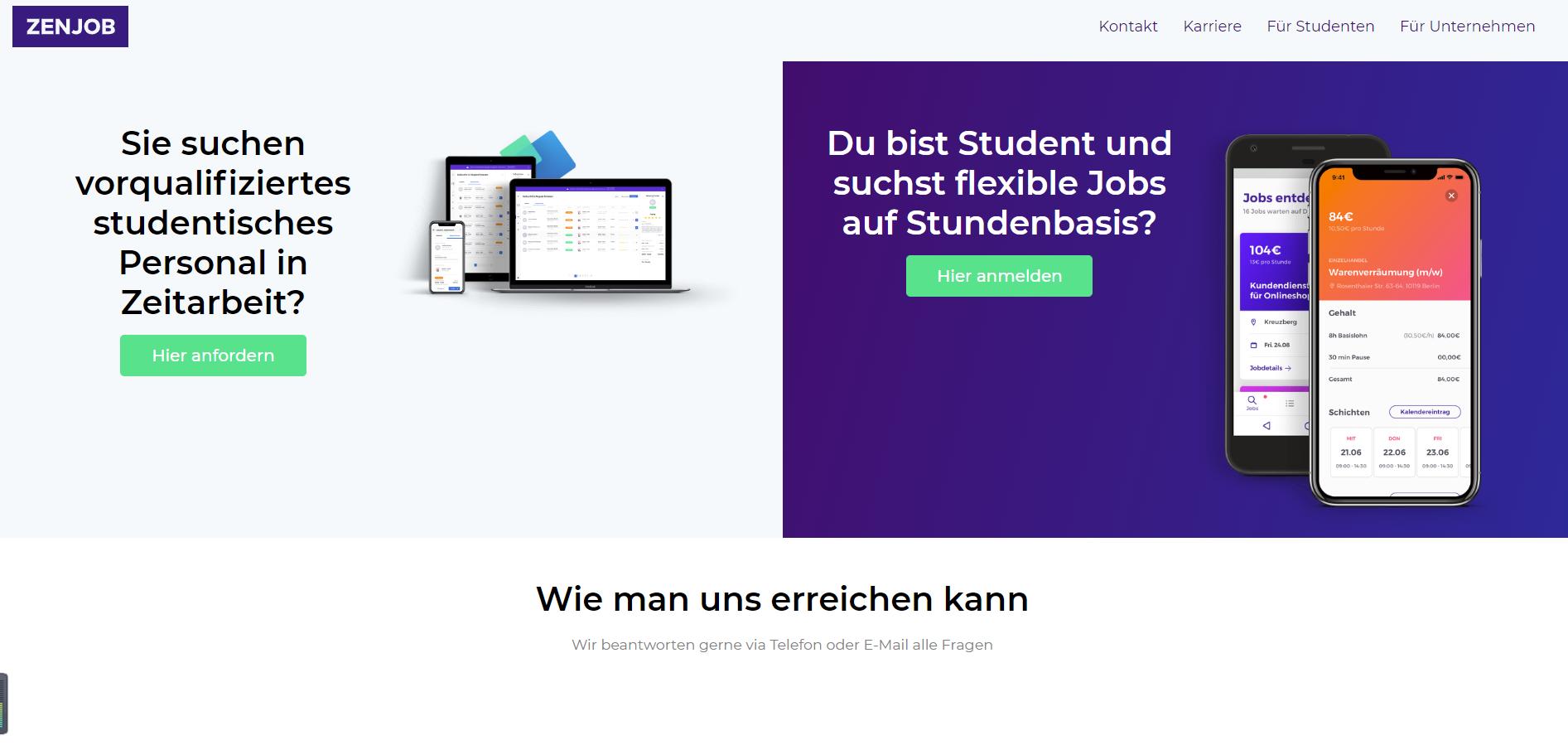 Zenjob成立于2015年,提供了一款弹性工作的工具,学生利用该软件可以按小时预订短期工作或三到六个月的兼职工作,并灵活决定他们的工作时间、地点和对象。每月有超过12000名学生在物流、展会、零售、美食等行业工作。