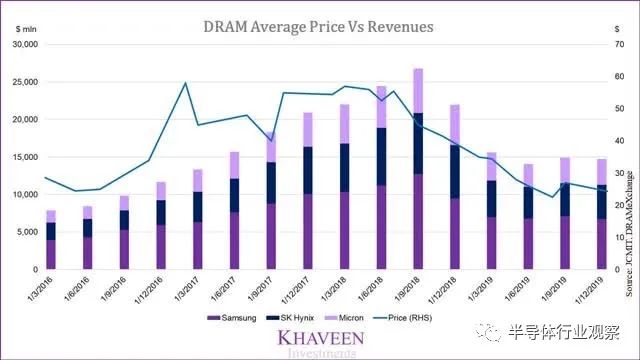 该市场具有寡头垄断的特征,D3 在2019年第四季度占据了高达95%的市场份额。由于每年有数十亿个单位出货量,DRAM变得商品化,因此对价格非常敏感。如下所示,收入往往与平均售价密切相关,因此价格上涨将使D3的利润受益。