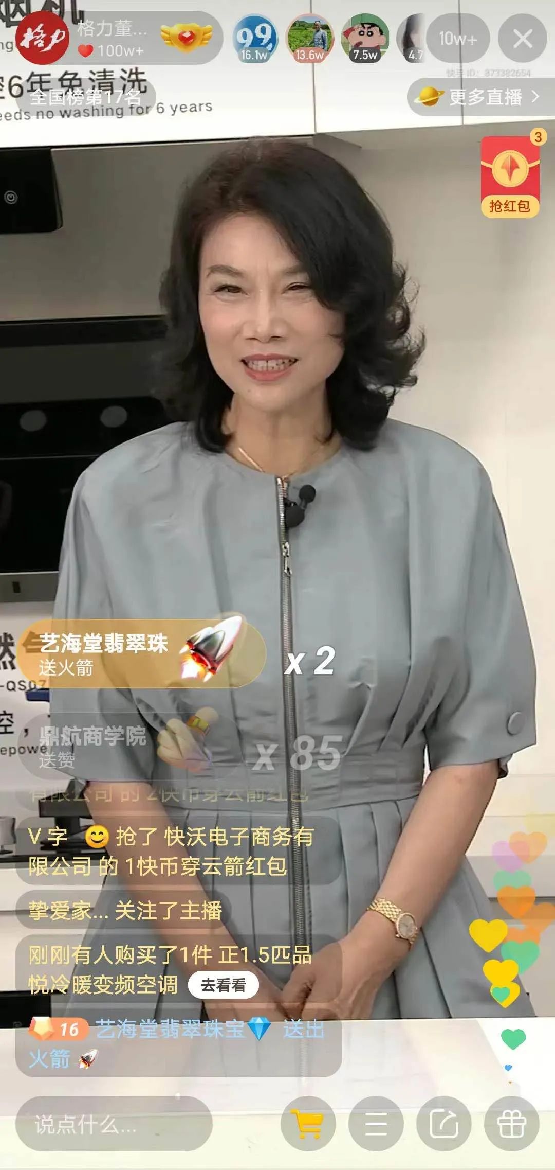 在当晚的快手直播中,销售额不断创造新高的成绩,让格力集团董事长董明珠的脸上挂满笑容。在直播间里,董明珠还热心地化身现场销售,亲自为老铁介绍起格力的明星产品。