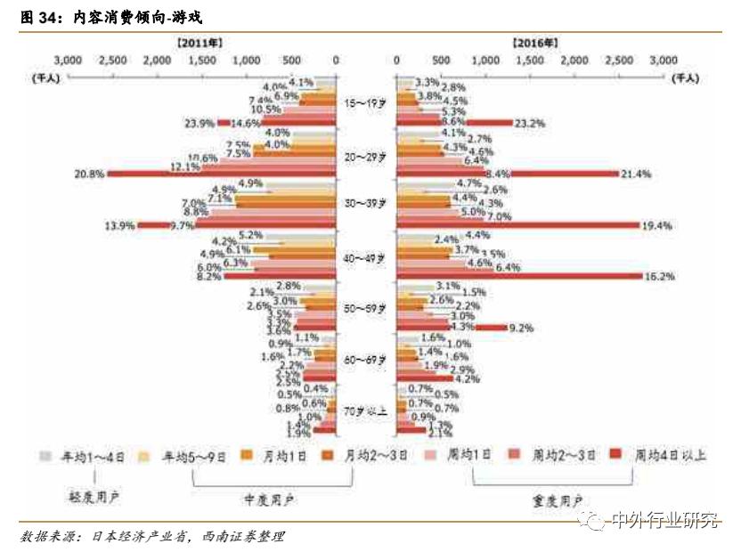 游戏重度用户数量随着年龄增长,依然保持强势。