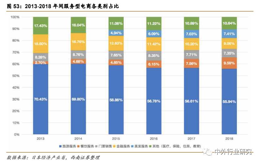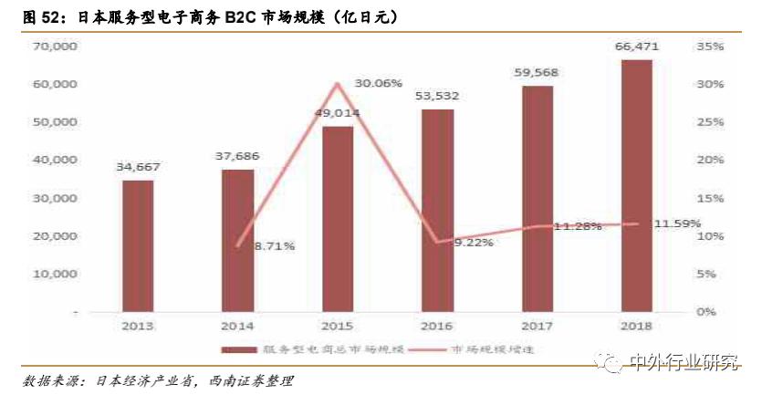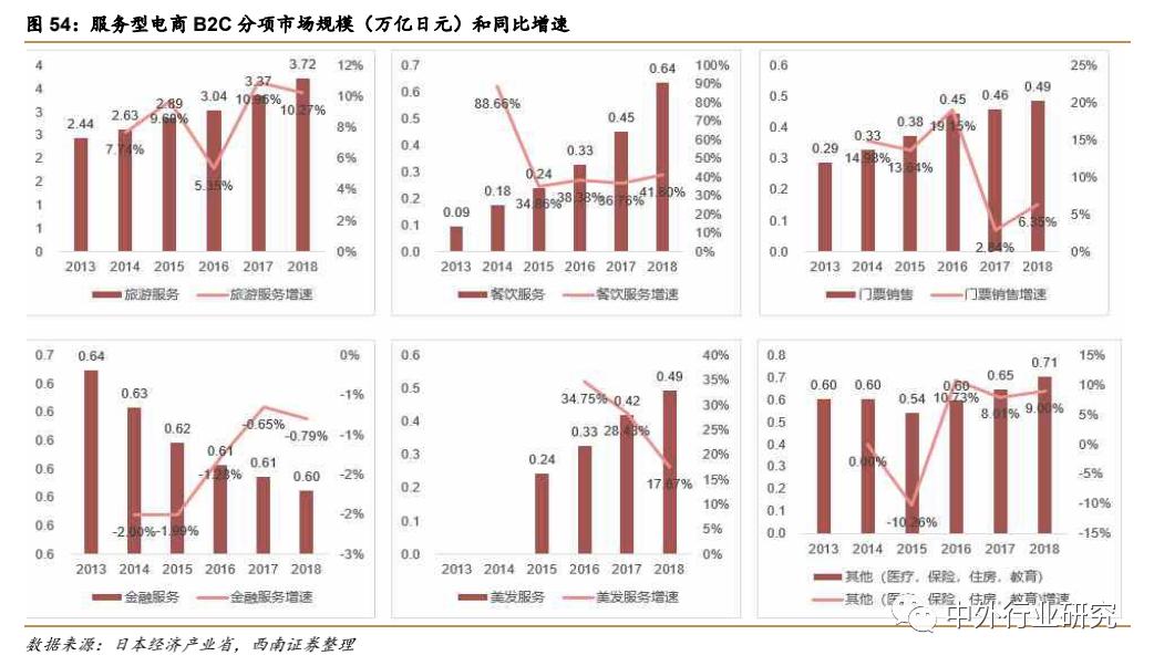 1)旅行服务:拥有最大的电商市场规模,为37186 亿日元,比上年增长 10.27%。