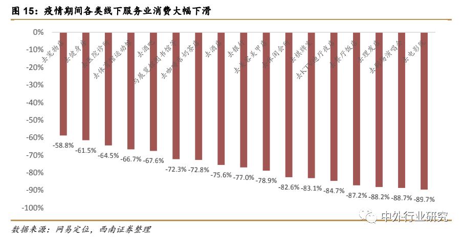 各类线下服务业消费意愿短期内均出现大幅下滑。