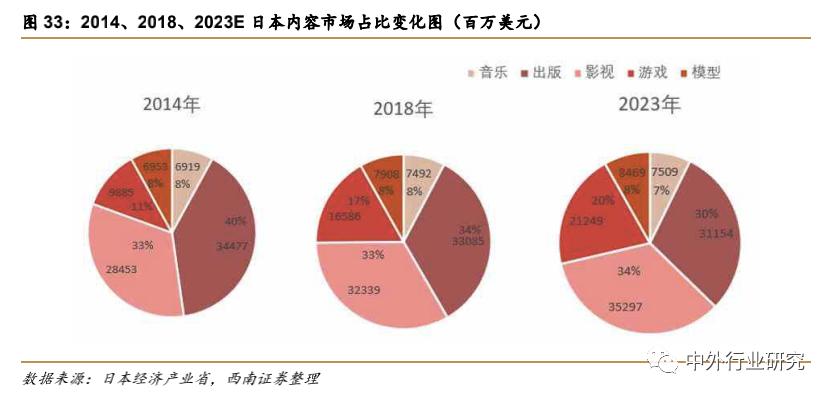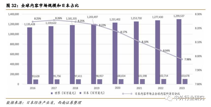 随着全球内容市场的整体增长,日本内容市场占比虽逐渐减少,但整体保持正向增长。