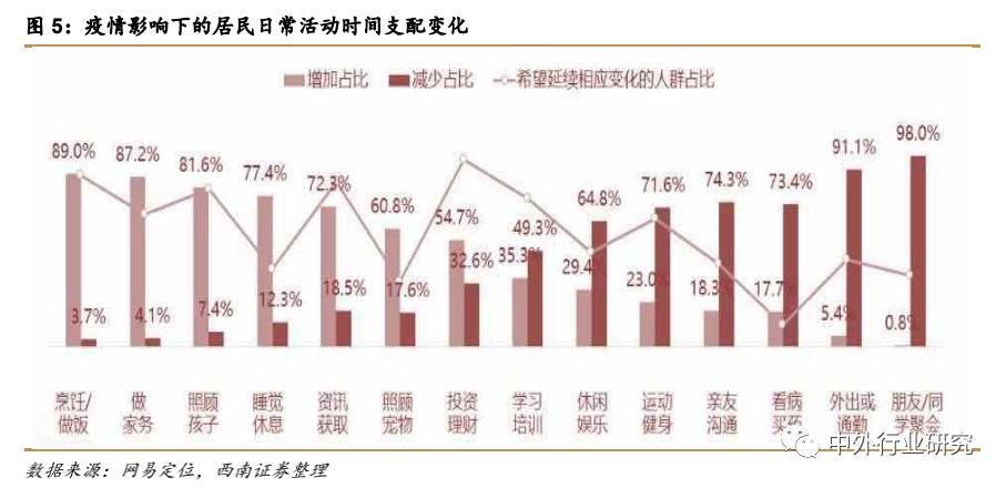 居家时间大幅延长,日常活动所用时间发生快速转变。