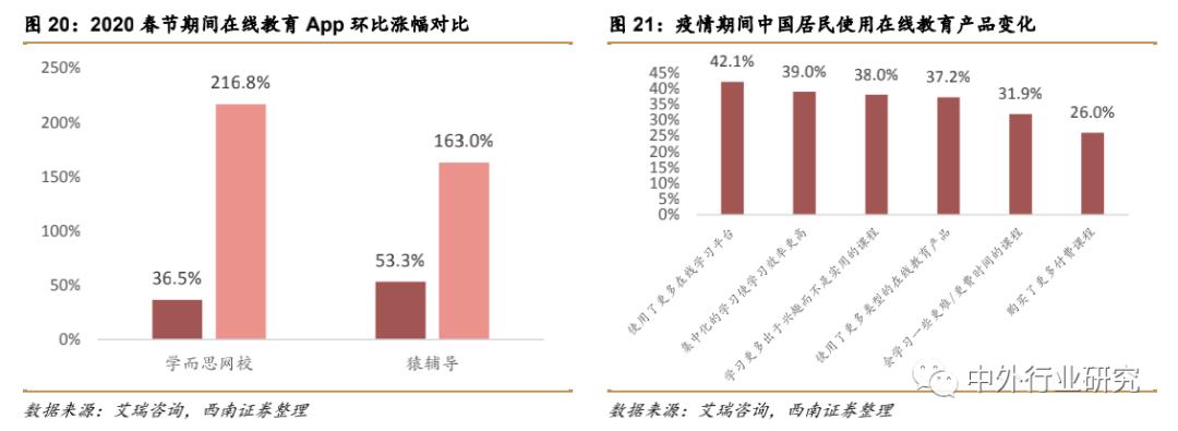 以学而思网校和猿辅导为例,日活用户数量以 150%+增速超过 2019 年平时增速,而更多样的在线教育需求也在疫情期间有所释放。