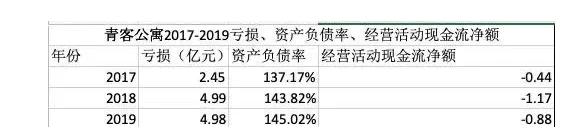 记者梳理了青客公寓2017年-2019年的财报,财报显示,青客公寓已经连续3年净亏损,资产负债率也在逐年走高。