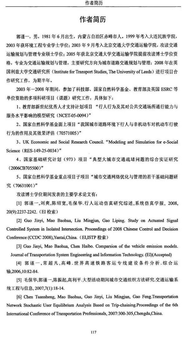 2008 年郭谨一曾在英国利兹大学交通研究所进行项目研究,同时参与了多项科技部、国家自然科学基金等项目课题研究。在毕业后,秉着学而优则仕的传统道路,郭谨一顺理成章地进入中国交通科学院担任研究助理。在知网可搜索到其交通领域相关论文 10 余篇。