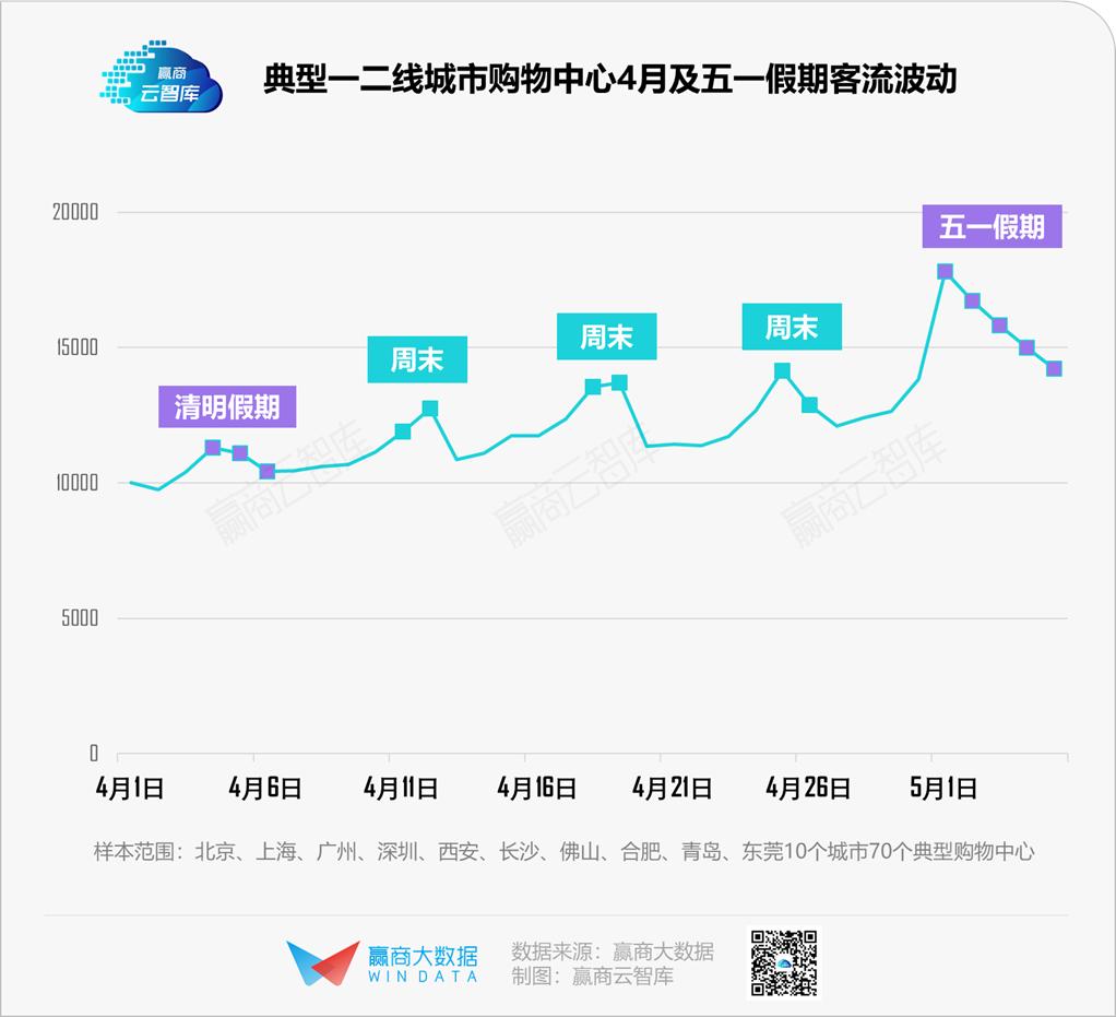 刚过去的五一小长假,零售商业地产集体迎来了久违的客流高峰。70个典型一二线城市购物中心五一期间平均日均客流高于清明假期46%,用脚投票的消费者,积极踏出家门走进mall,开逛!