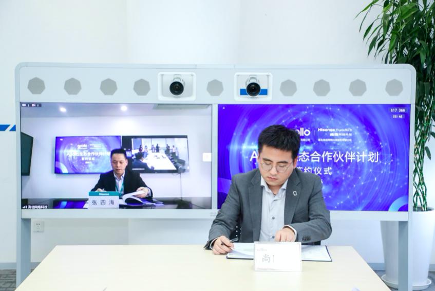 5月13日,海信与百度正式签署战略合作协议,将作为百度Apollo智能交通生态合作重要伙伴,基于各自在智能交通、车路协同等领域的优势技术与资源积累展开全面合作。