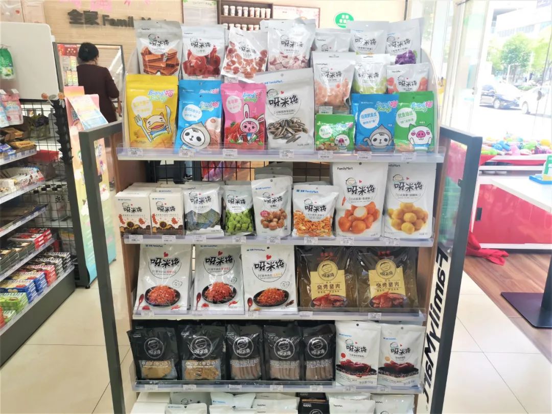 例如全家自有品牌呀米将系列,有软糖、棉花糖、花生、瓜子、猪肉脯、椰子干、酸奶果粒块等多种品类,包装是统一的简约风,口感和品质都较好,占据了全家门店单独一面货架。全家的自有品牌零食,不仅是零食品牌的竞争对手,同时也让渠道有了更多与品牌谈价的筹码。
