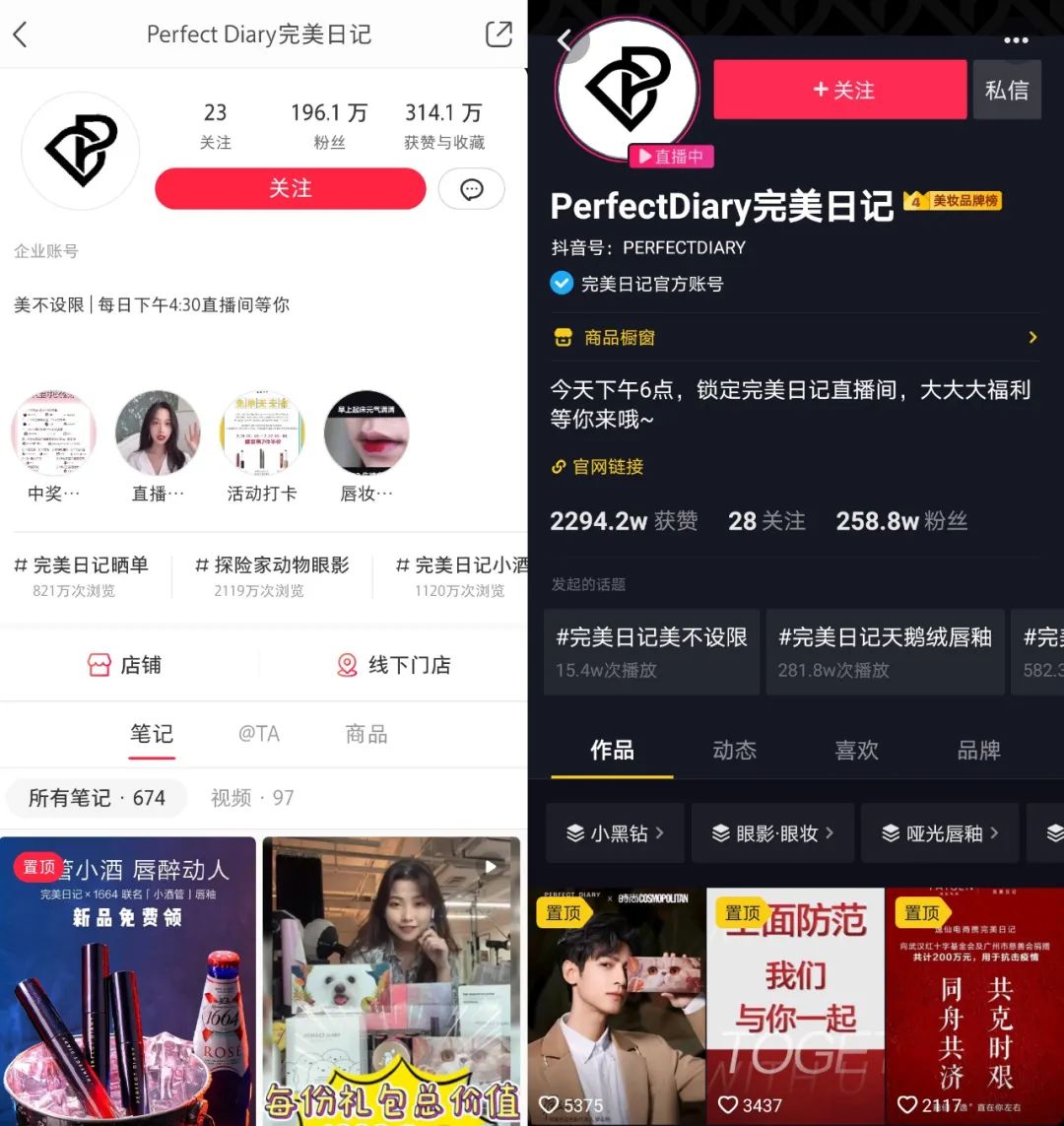 如今完美日记拥有小红书粉丝196万、抖音粉丝258.8万、微博粉丝46万、B站粉丝5.8万、快手粉丝140.1万,以及数千个微信群,人数基本在200人以上。