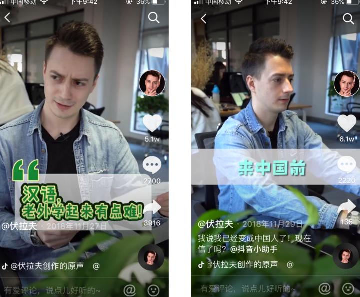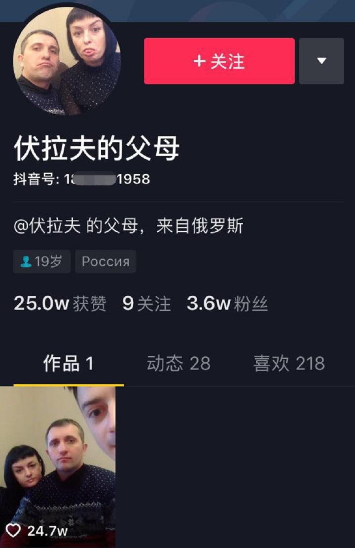 就连伏拉夫远在俄罗斯的父母也开了抖音号,一个视频就涨粉3.6万。