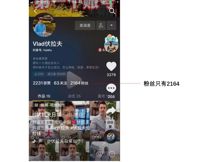 可惜装逼这个网红领域早已是一片红海,他失败了,视频播放量只有几千,粉丝也只有2千多。