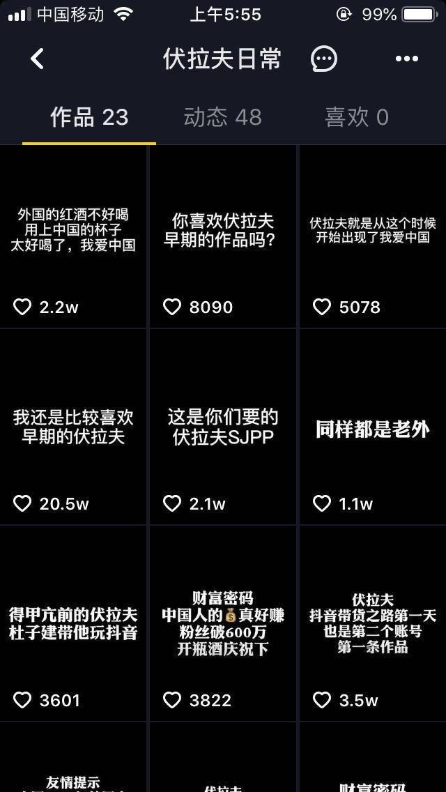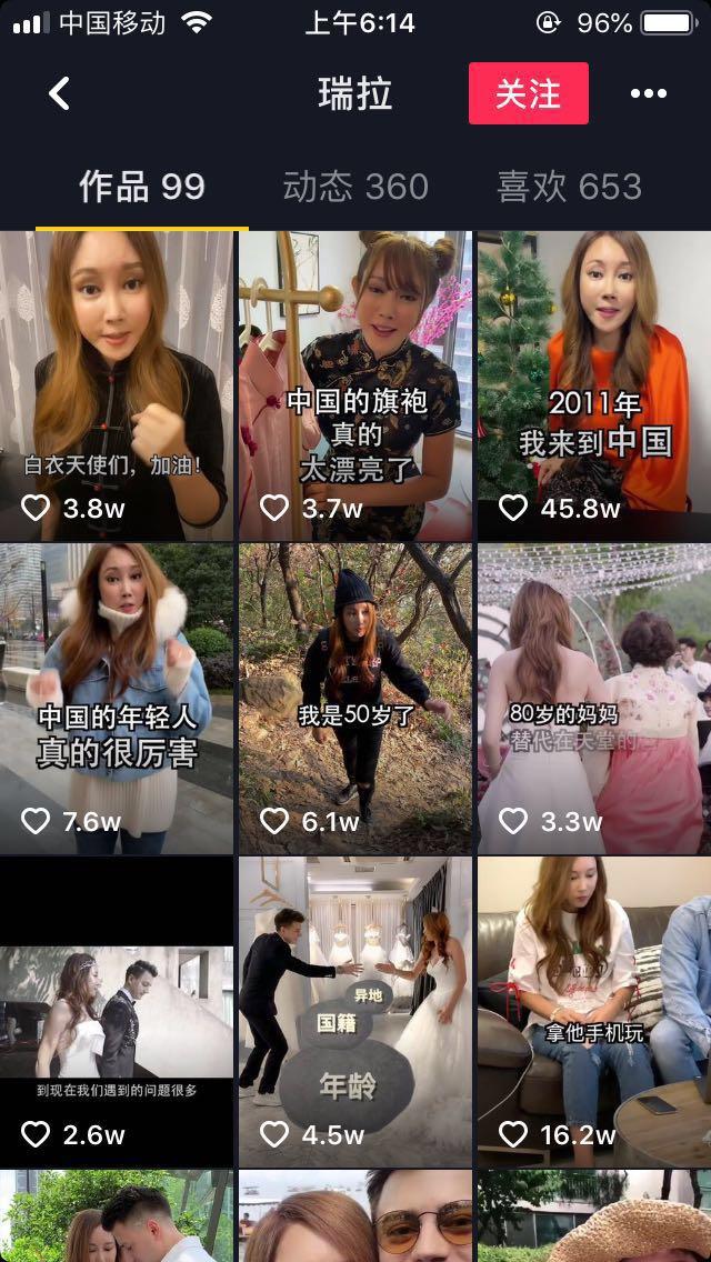 看抖音这么好捞,伏拉夫的老婆也跑来凑一脚,拍了一堆中国很厉害的视频,粉丝也飙到了141万。