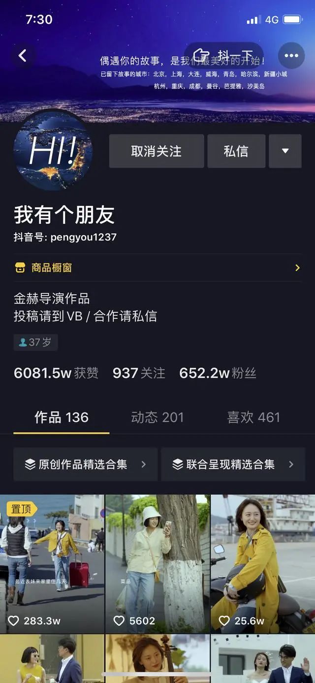 海边、黄昏、黎明、路灯,近乎素颜的男女主,文艺的大提琴小调BGM,简单而细密的情感故事……你可能想不到,这个画风清新,在抖音上拥有652万粉丝的账号,背后不是草根素人,而是一位影视导演。
