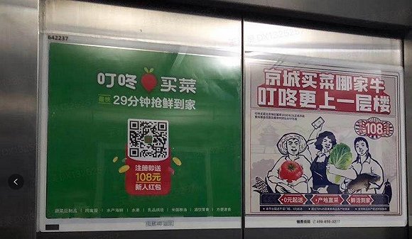 叮咚买菜在北京地区的电梯广告,图片来源:受访者提供