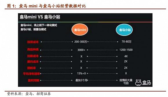 也有声音认为前置仓不可能跑通。盒马CEO侯毅曾公开表示,前置仓模式重、流量不足,最终会败给“盒马mini”这样将仓与店结合的模式。根据招商证券发布的研报,仅从盒马业态来看,前置仓模式的盒马小站与盒马mini最大的不同在于前期投入成本mini高于小站(前置仓),但mini的盈利周期最快三个月、小站在疫情前却大面积亏损。