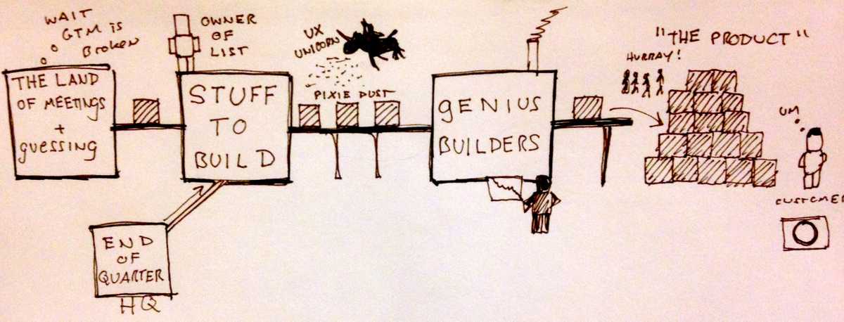 9、“移交了就不管”的文化。前期流程到位,做很多“准备工作”,只是为了确保工程师不会无事可做。团队不直接参与用户研究、探索或实验和验证工作。一旦工作交付后,团队很少与客服、售后和销售团队交流。