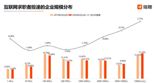 根据猎聘网的招聘数据,2020年大学生群体是越来越趋向选择规模更大的企业。