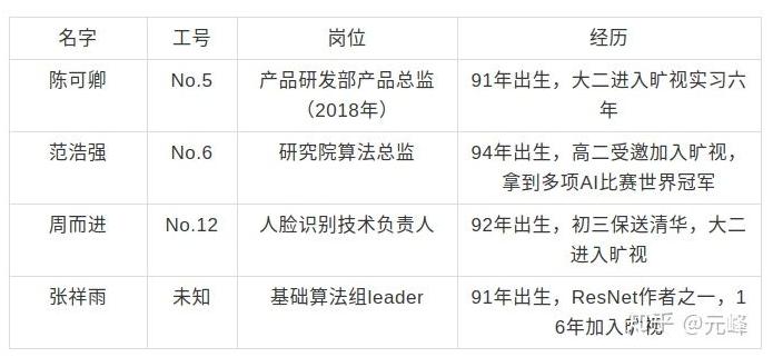 以旷视为例,工号前十的创始员工很多都是90后,随着旷视的高速发展,都已经成为了各个组的负责人。