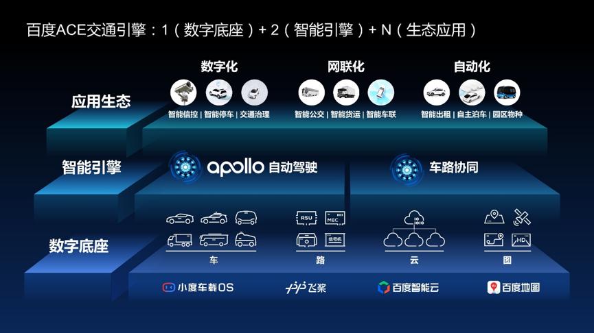 由此,百度Apollo在今年4月提出了车路行融合的全栈式智能交通解决方案“ACE 交通引擎”,这意味着不仅仅是自动驾驶,下至底层数字云平台,上至相关生态应用,与城市智能交通相关的事情百度Apollo都要做。
