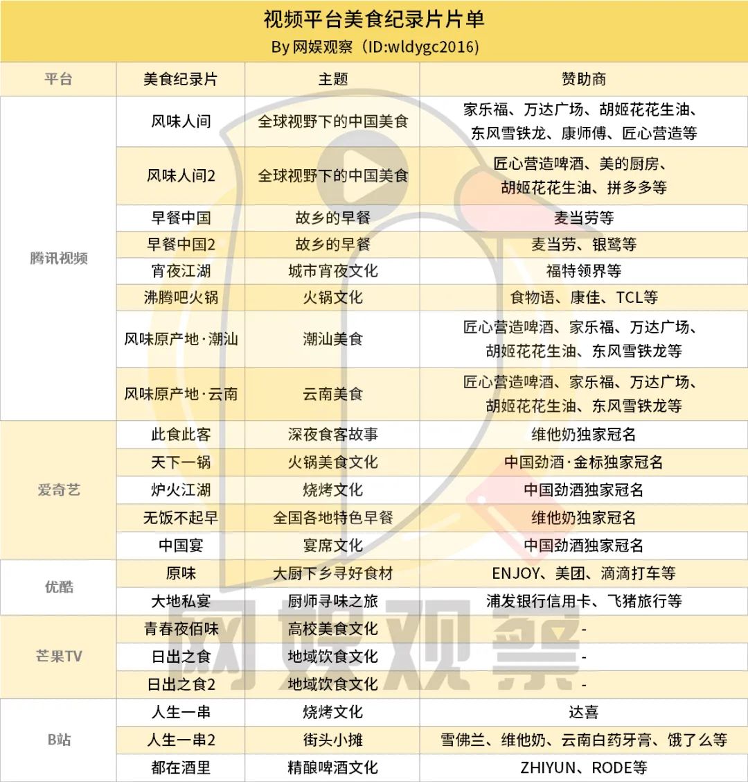 但在近几年,随着《舌尖上的中国》之后,《人生一串》、《风味人间》等爆款美食纪录片的接连诞生,该领域的商业优势逐渐凸显,新的营销方式也应运而生。