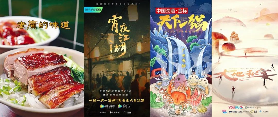优酷更喜欢形式上的创新,早几年的《原味》以及即将推出第二季的《大地私宴》,强调美食、生活与自然三者之间的平衡;芒果TV依托于湖南卫视,也上线了以高校美食文化,及地域特色饮食文化为主的《青春夜佰味》和《日出之食》。