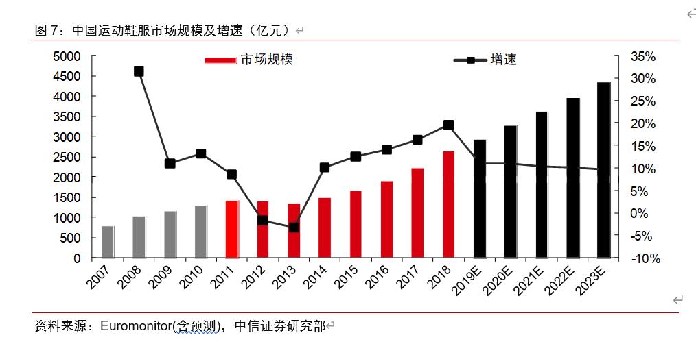 以上简单介绍了国内运动鞋服市场的发展过程,包括竞争的格局、不同品牌市场份额的演变。