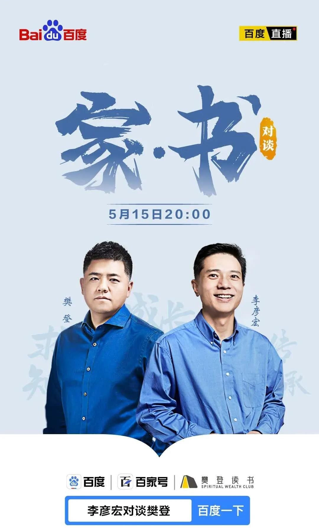 百度宣布,今晚8点李彦宏将在百度App进行首次直播,与樊登读书创始人樊登对谈「家·书」。在百度官方微博的宣传上打了一个tag「李彦宏的书单」,预计在这次的直播中,李彦宏可能会谈自己的书单内容。