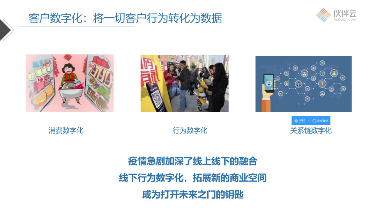 过去大企业才能把用CRM等工具把客户资产沉淀的较为完备,现在因为消费者侧的数字化被移动互联网、微信给教育了,所以就导致用户的关系链、行为和消费都会被数字化。而疫情很深刻地加剧了线上线下的融合,那些未能提前沉淀客户资产的企业,将面临失去客户的风险。所以未来,所有的公司都是互联网公司,所有的公司都在数字化,只有数字化了之后,才能打开一个新的商业空间。