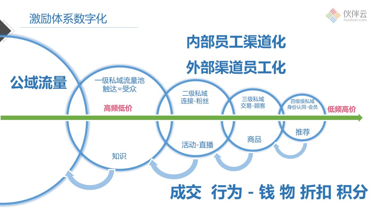 谈到数字化,就离不开激励,没有激励,数字化是无非真正推行下去的。我们的员工谁服务的好、谁服务的不好,谁的业绩高、谁的业绩低,有哪些是内部的员工、有哪些是外部的兼职……以前在没有数字化系统的时候,都没有办法去实现。但现在借助于企业微信、伙伴云这样的一些系统,可以实现内部员工渠道化,外部渠道员工化。