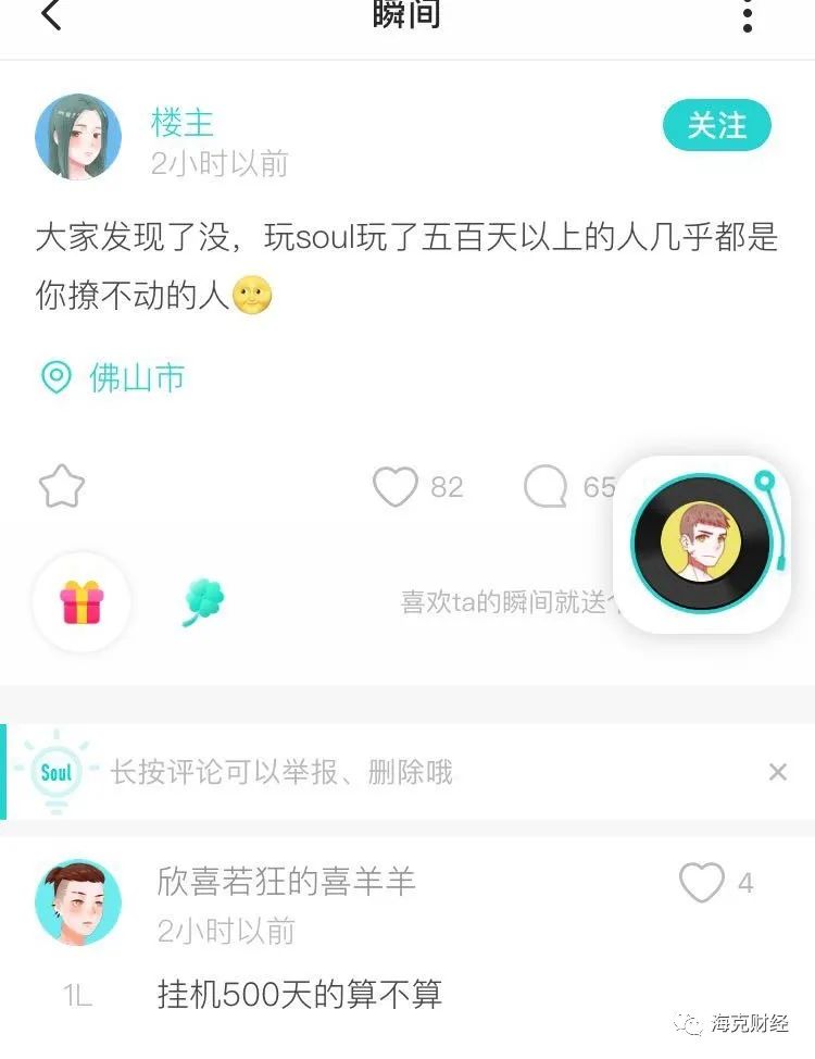 有用户抱怨说,Soul已经失去了原来的美好,Soul上的人已经越来越不喜欢聊天了,宁可发一大堆内容到广场,也不愿和陌生人私聊一句,越来越多的人在把Soul当树洞在玩。
