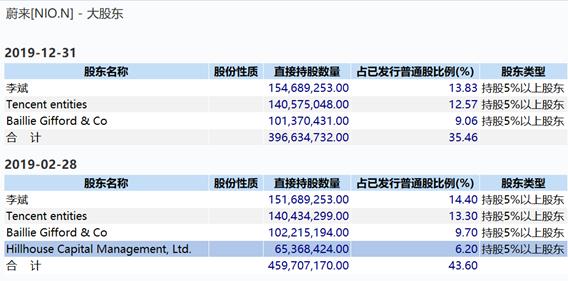 根据2019年年报显示,曾是蔚来汽车第三大股东的高瓴资本(Hillhouse Capital Management,Ltd.)已清空蔚来的所有股权,它在2019年2月28日还持有蔚来6.2%的股权;而淡马锡控股也于今年2月大举减持至1390.9万股,持股比例从之前的5.4%下降至1.8%。