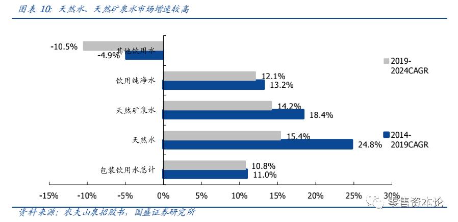 消费升级趋势下,高端天然矿泉水获得溢价且增速较快。