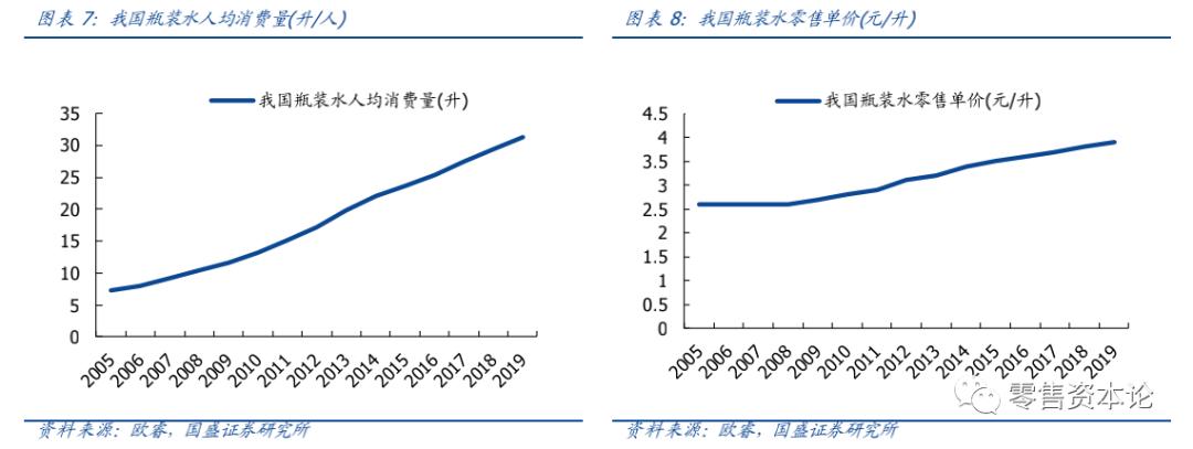消费升级、健康需求促进瓶装水行业量价齐升。随着收入水平的提升,消费者健康意识的日益增强,越来越多的消费者选择瓶装水作为饮用水。