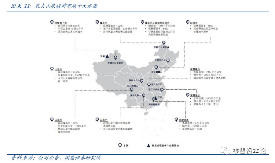 2)农夫山泉布局十大优质水源地,构建覆盖全国的供应链。