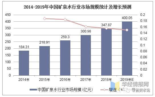 随着矿泉水在市场上被接受的程度逐渐提高,我国矿泉水市场规模逐年增长,2018年我国矿泉水市场规模达347.87亿元,同比增长15.58%。2019年预计将维持高速增长态势,市场规模将突破400亿元。