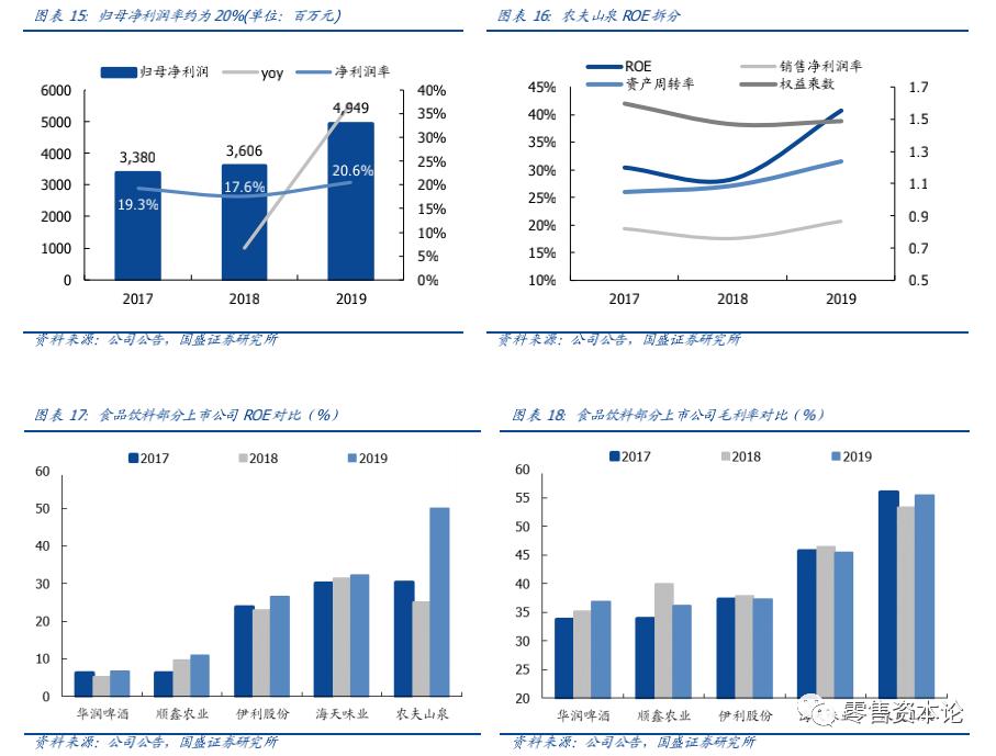 根据弗若斯特沙利文数据,农夫山泉的市占率为 20.9%,是第二名的1.5 倍以上,龙头赢家通吃,坐享高收益。