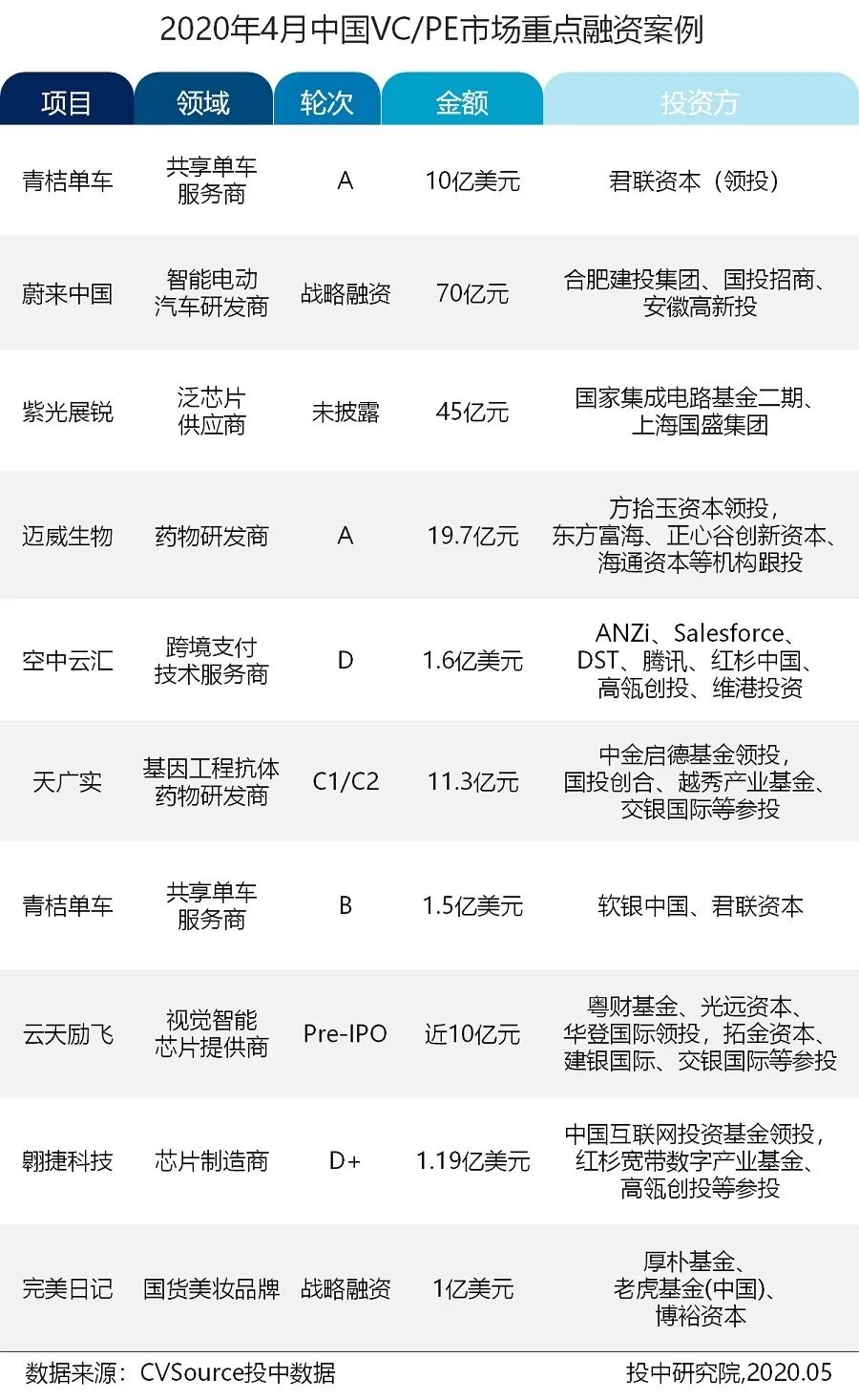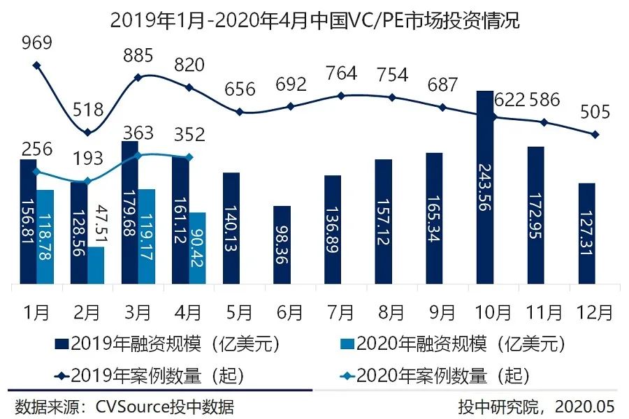 2020年4月,VC/PE募资市场颇有收获,基金完成募集规模高达131.86亿美元;