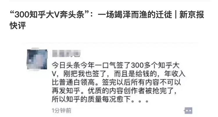 随着社区氛围的下降,对知乎大V来说,在知乎答题已经变成一件收益很低的事情。自己的答案被站外四处转载获得远高于站内数倍甚至数十倍的流量,免费写答案要被杠,收费写答案又要被骂,创作体验已经很差了。