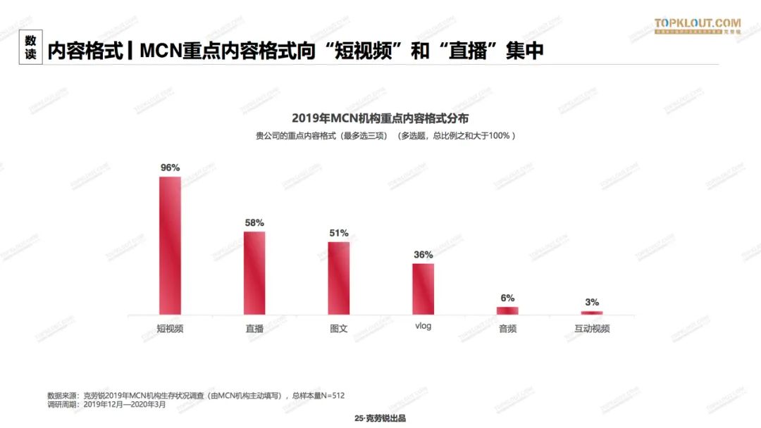 最后是众所周知,也是产业根本的内容形态。MCN重点内容格式向短视频和直播集中。一方面,短视频的视听觉体验优于图文且摄入信息时大脑决策快,无需复杂思考;另一方面,得益于强大的互动性和即时性,直播的信息沟通真实度更高。