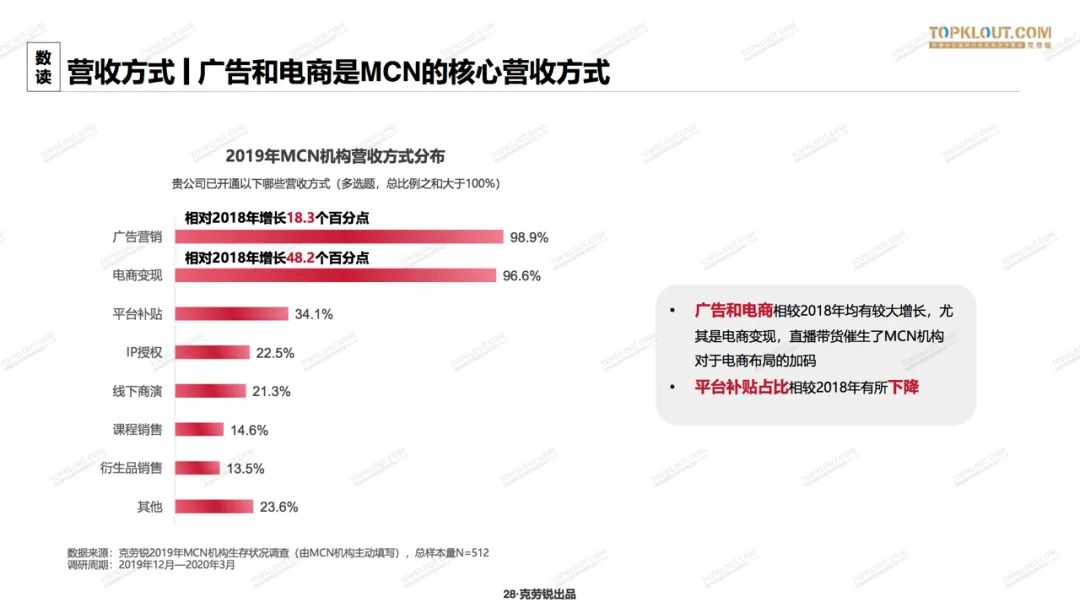 第三方专业报告的呈现,让MCN价值排行和红人数据表现逐渐透明。品牌主在投放,平台在抢夺时有了更清晰、直观的判断;而MCN机构和投资方,也能在克劳锐这样的白皮书中,看到他们的路径分野和潜在价值。
