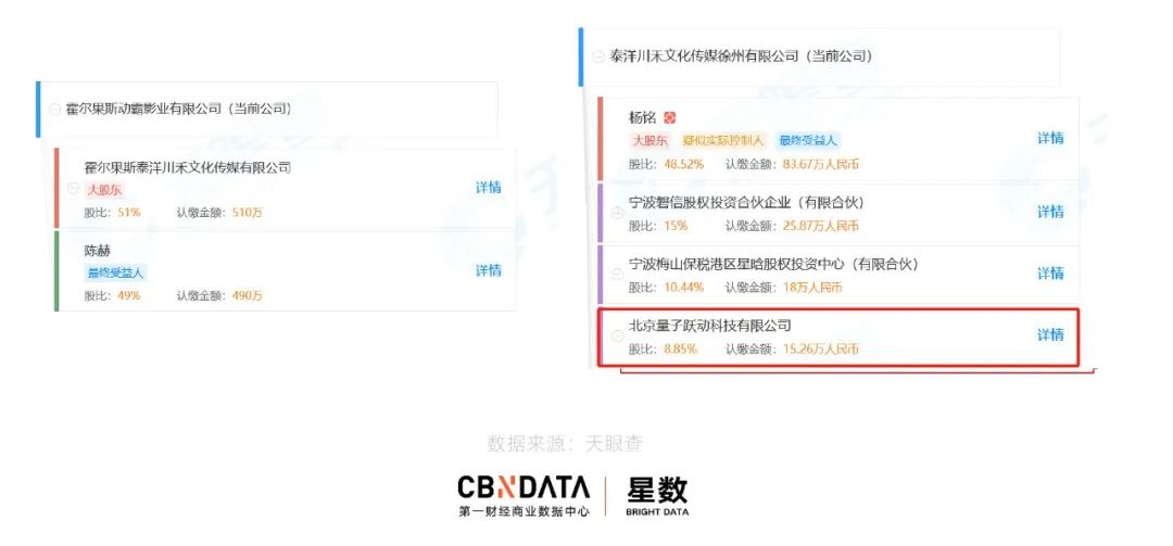 另一方面,陈赫与抖音,还有着更深层的资本关系。根据天眼查,陈赫旗下霍尔果斯动霸影业的另一大股东是泰洋川禾文化传媒,而泰洋川禾在今年3月得到了抖音所属的字节跳动有限公司1.8亿元人民币的B轮融资。